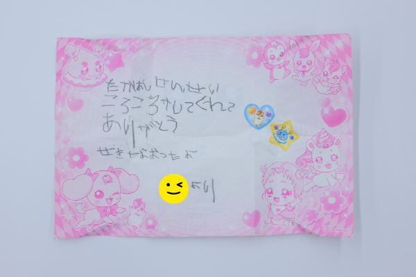 以前、お二人目の妊娠準備で通われていた患者様のお子様が、気管支喘息の症状でお悩みでした。症状が悪化しているとのご相談をいただき、小児鍼で使用する「ローラー鍼」による治療を始めました。少しずつ咳の回数も減り、日に日に呼吸が楽になっていかれました。後日、お子様からこのような温かいお手紙をいただきました。